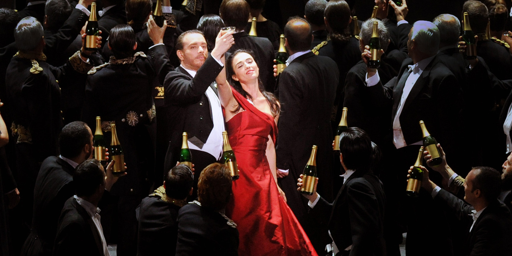 Violetta Valery : Ermonela Jaho / Alfredo Germont : Francesco Meli / Giorgio Germont : Plácido Domingo / Flora Bervoix : Ahlima Mhamdi / Gastone di Letorières : Christophe Berry
